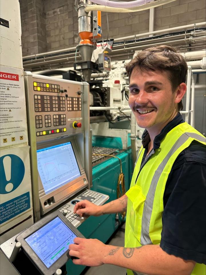 “They’ve built a strong training culture,” he says. “Connor progressed from Level 3 plastics processing through to Level 4 injection moulding and now into leadership training. It’s rewarding to see that circle continue.”