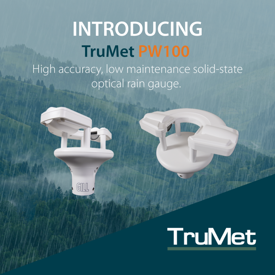 Gill Instruments, has launched the TruMet PW100, its new infrared optical rain gauge.