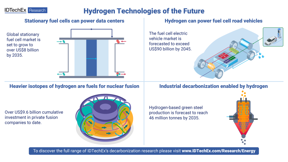 Even the heavier isotopes of hydrogen have a role to play. Deuterium and tritium are essential fuels for nuclear fusion technologies, hoped to provide energy-dense, continuous sources of green energy with no risk of meltdown. According to IDTechEx’s “Fusion Energy Market 2025-2045: Technologies, Players, Timelines” report, commercial fusion companies have raised over US$9 billion to date, while an increasing number of governments see fusion as the modern day 'space race'. Players are pursuing different reactor designs and fuels, leading to various materials opportunities and supply chain challenges.