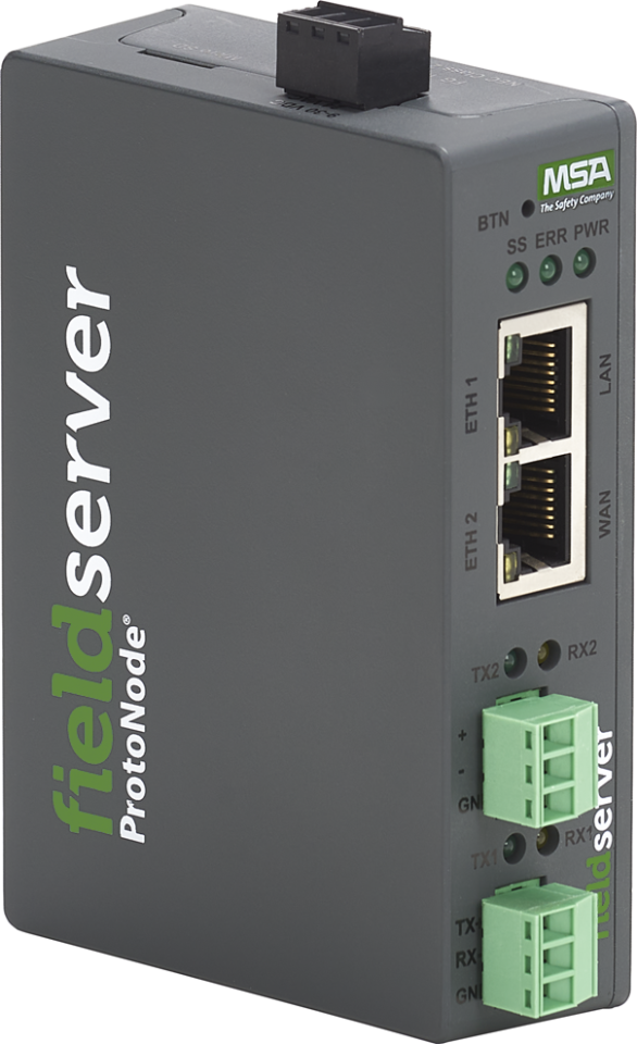 The FieldServer ProtoNode Gateway provides remote monitoring capabilities via cloud communications to various fixed detection monitoring systems, including all MSA Safety Modbus and BACNet protocol Fixed Gas and Flame Detectors in the field, as well as devices from other manufacturers. FieldServer Gateways are versatile, cyber-secure, easy-to-configure devices that serve as entry points to the cloud for data communication and processing between internet-connected products and network protocols.